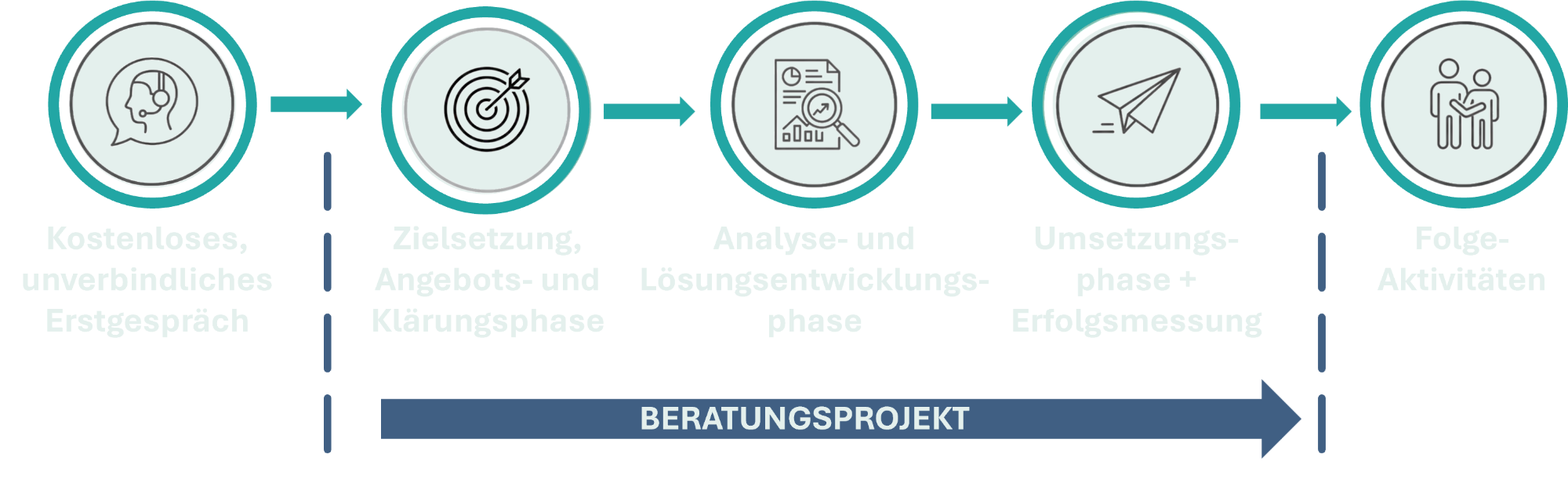 Wir definieren gemeinsam die Zielvorgaben, daraus erstellen wir ein massgeschneidertes Angebot für den Umfang der Beratungsaktivitäten.